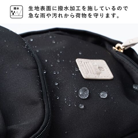 表面は撥水加工を施しているので急な雨や汚れから荷物を守ります。