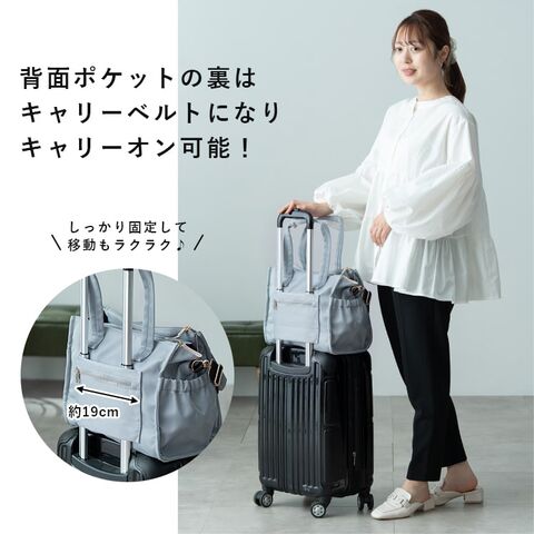 背面ポケットの裏はキャリーベルトになっているのでスーツケースに固定してキャリーオンも可能。