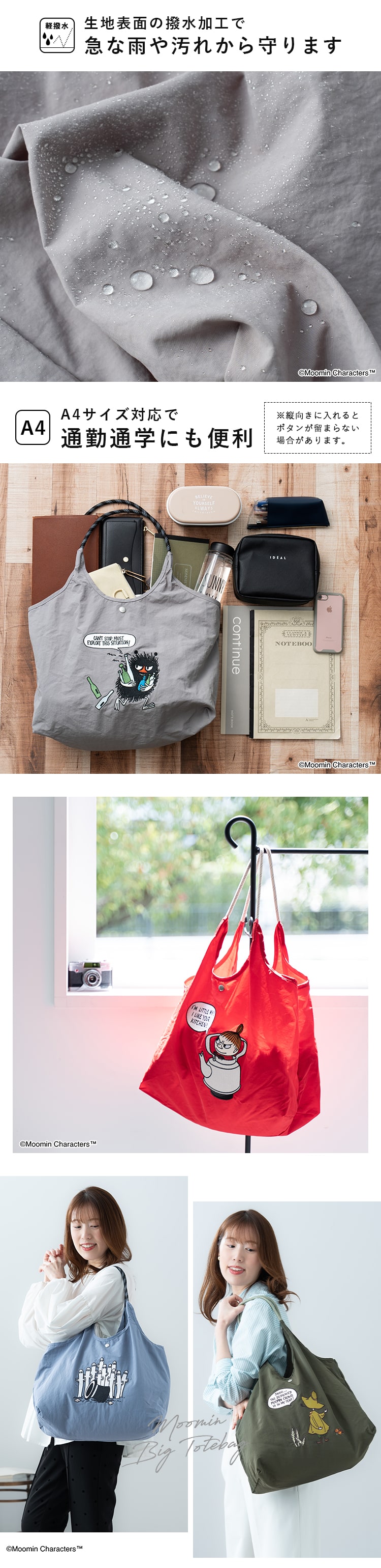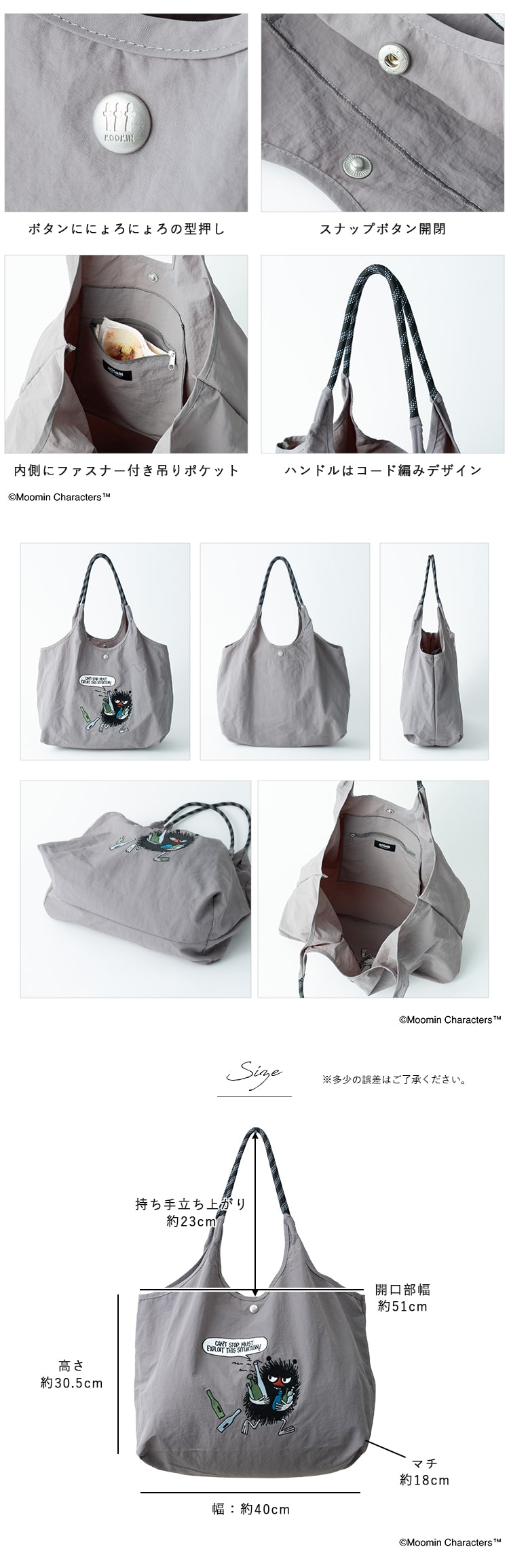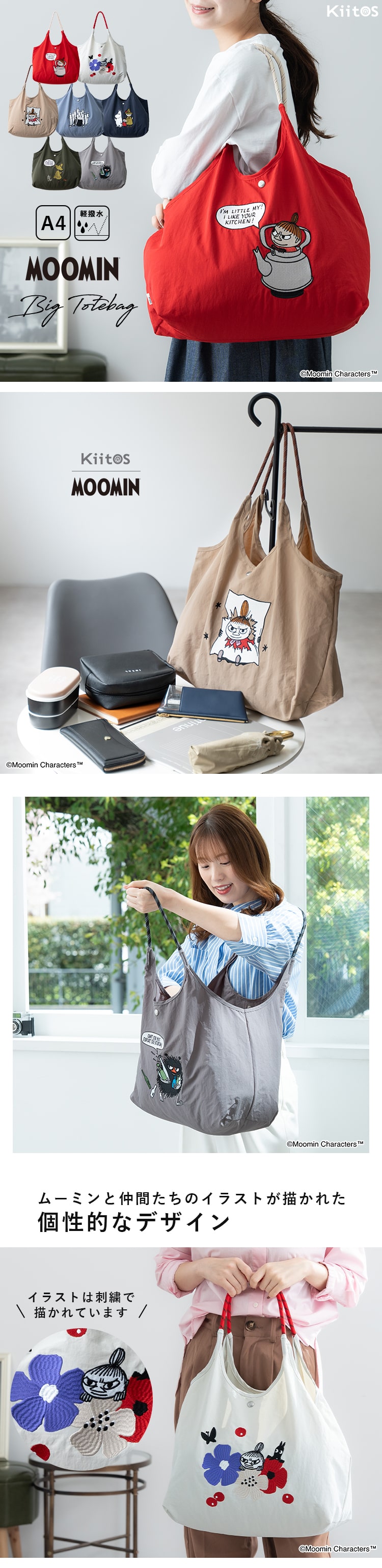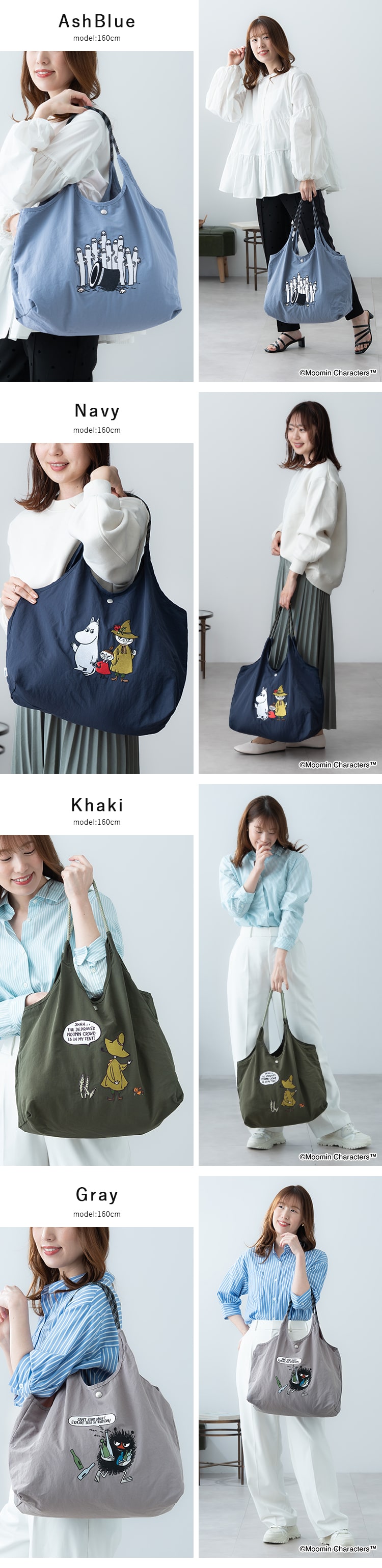 トートバッグ レディース ムーミン ブランド刺繍 ナイロン a4 大容量 撥水 軽量 おしゃれ 大人 肩掛け ギフト AshBlue