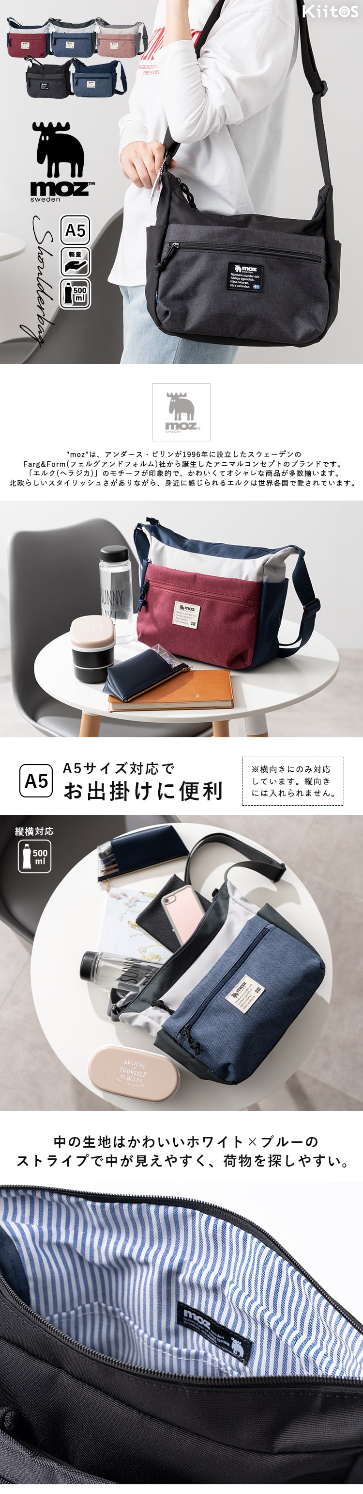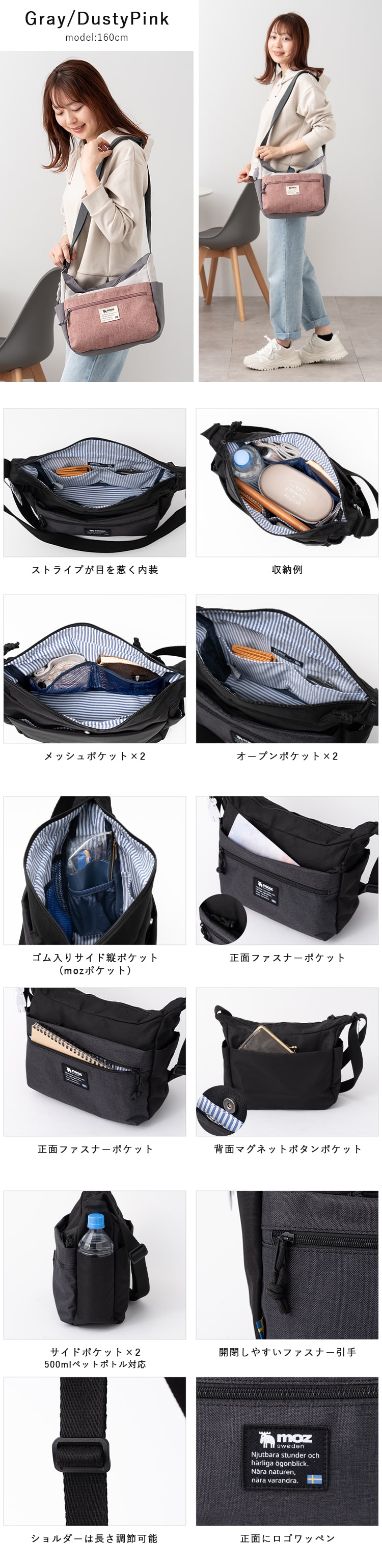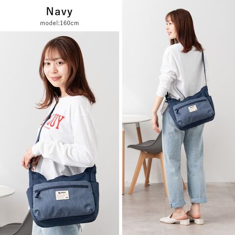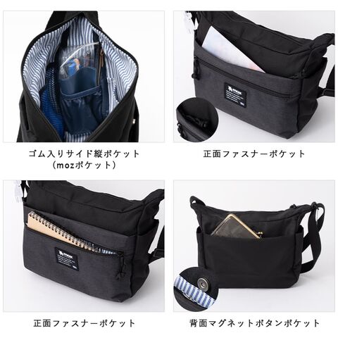 ショルダーバッグ レディース ブランド モズ 小さめ 斜め掛け 大人 おしゃれ 10ポケット 自立 軽量 通勤 通学 旅行 a5 ファスナー付き Navy