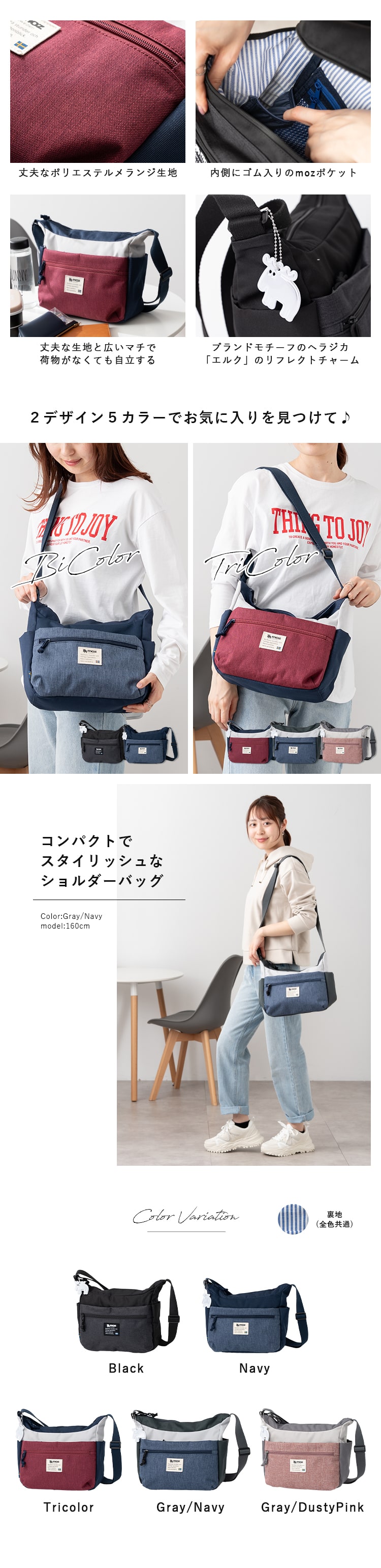 メランジの切り替えがアクセントになっている、北欧ブランドmozのショルダーバッグ。