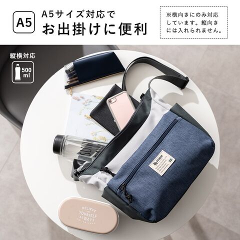 A5サイズが横向きに入るサイズで、身軽かつ便利に使える大きさです。