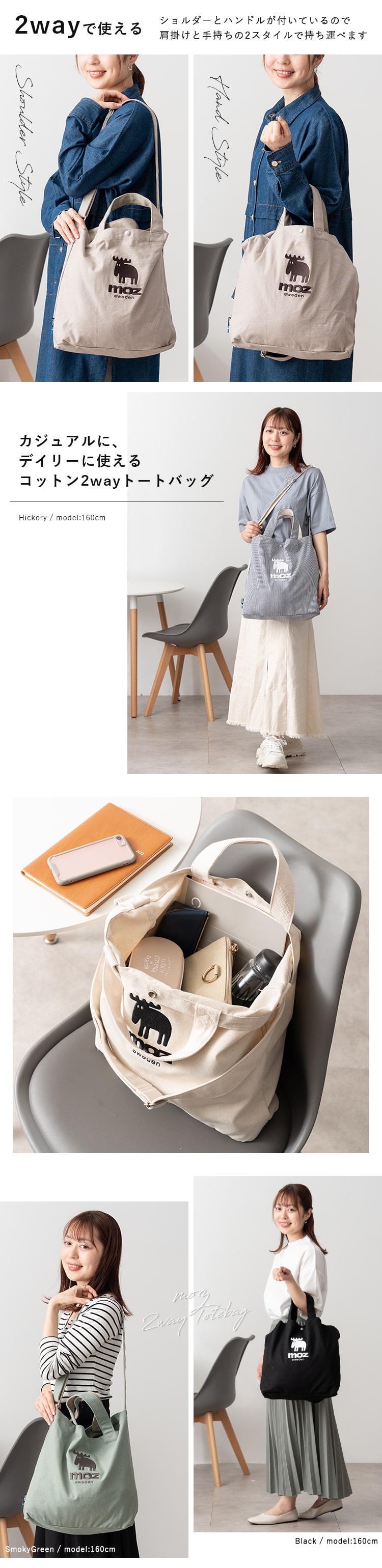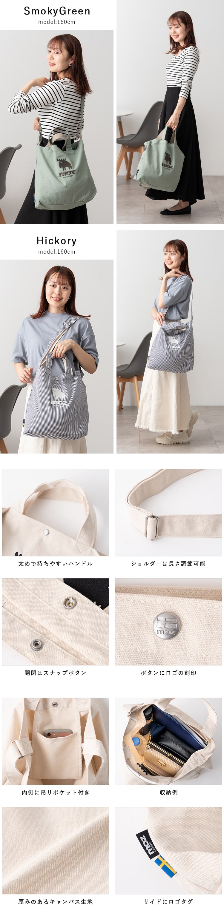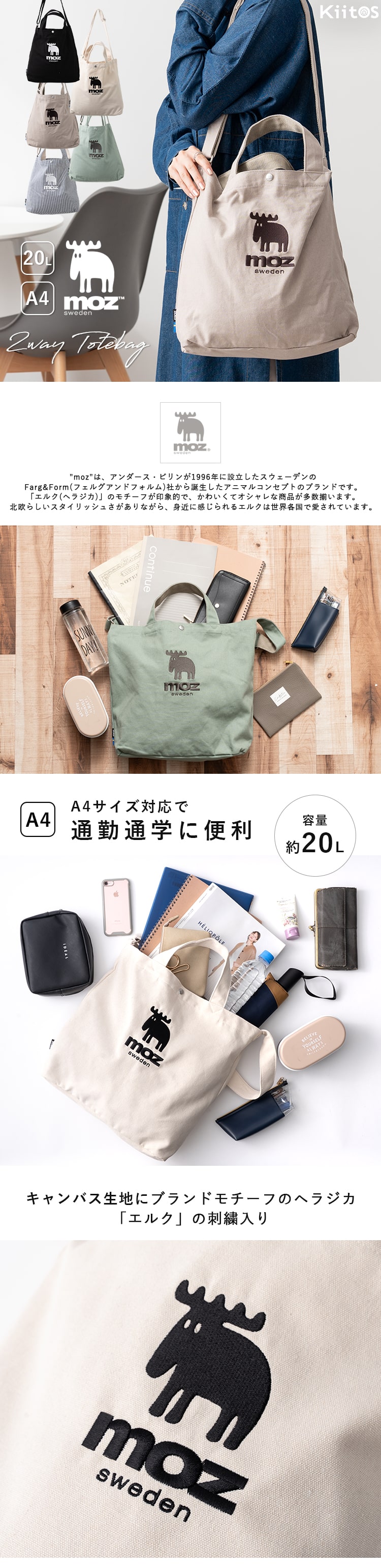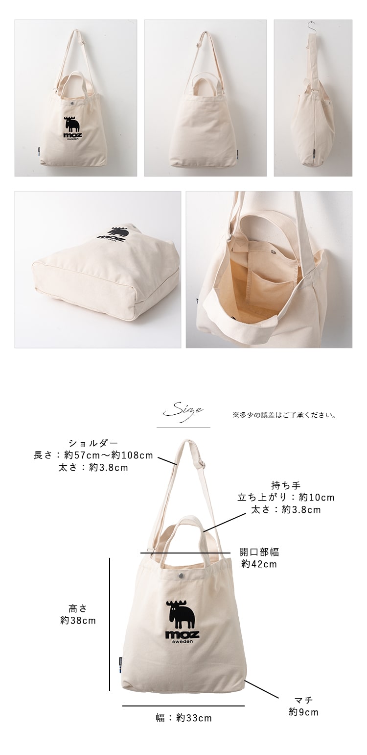 トートバッグ レディース ショルダーバッグ 2way ブランド モズ 斜め掛け キャンバス a4 大容量 20l 大人 おしゃれ White