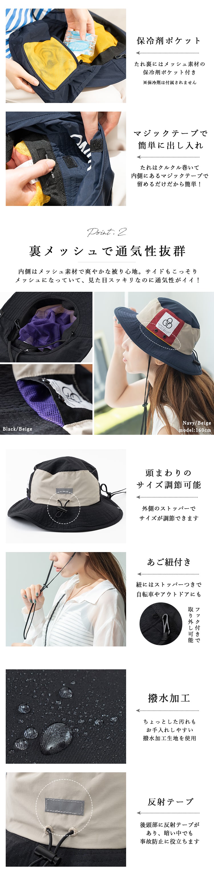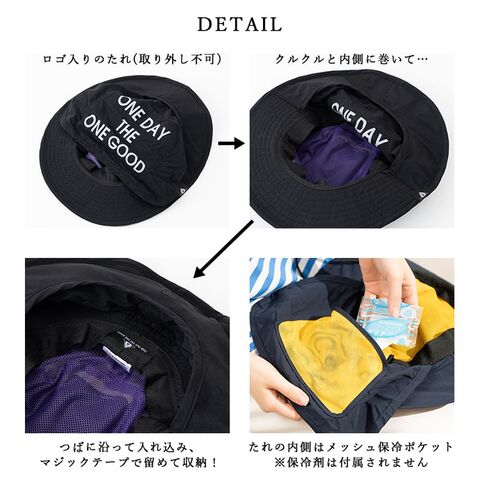 ・収納できるたれ付きで首元の日焼け防止に。さらに保冷剤ポケット付き!
