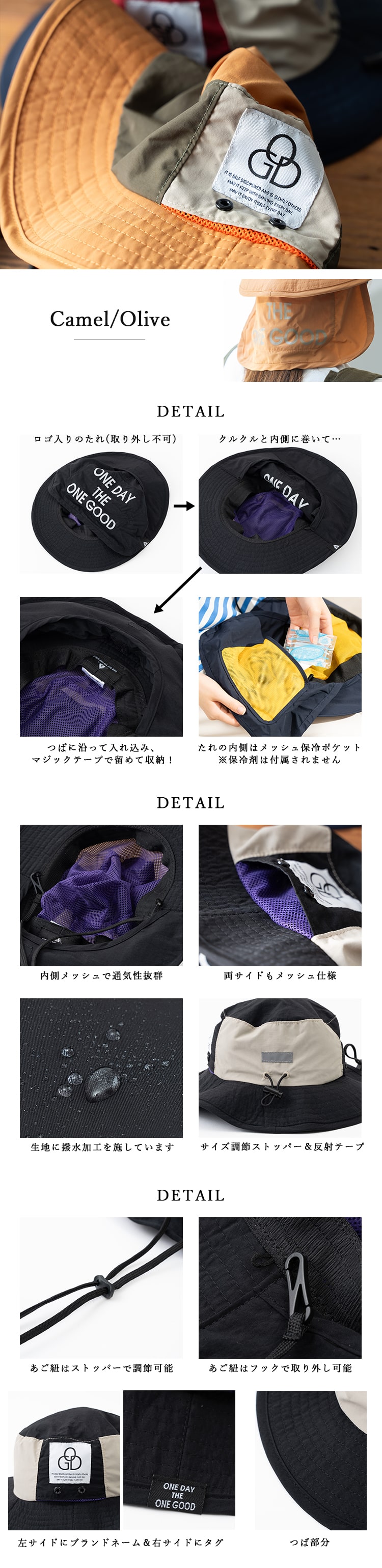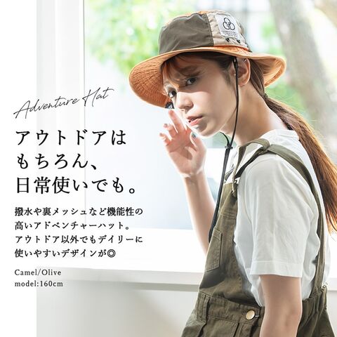 帽子 レディース 保冷剤ポケット たれ付き 撥水 アドベンチャーハット 大人 おしゃれ あご紐付き つば広 夏 涼しい uv 調整 洗える ギフト Camel/Olive