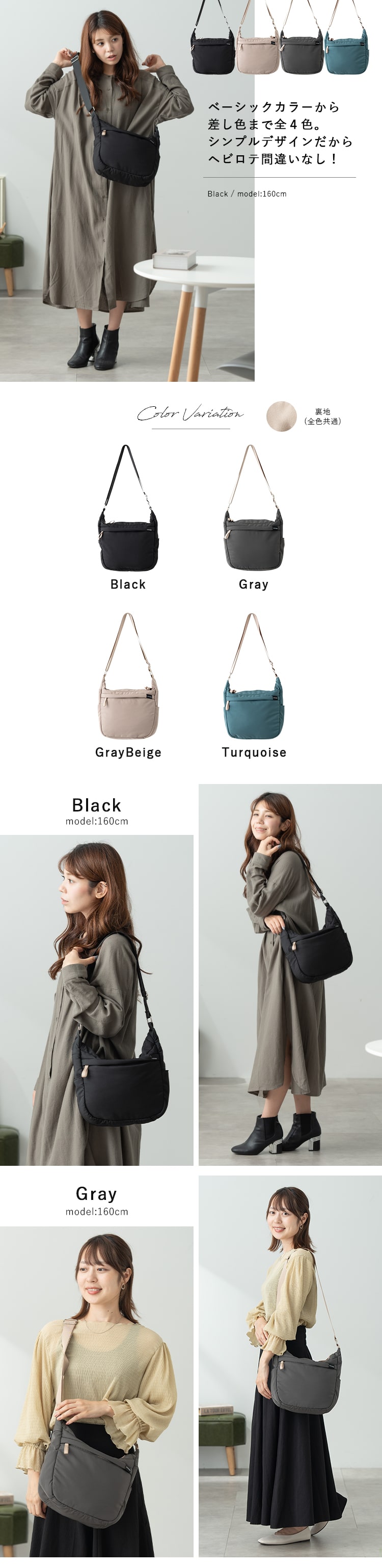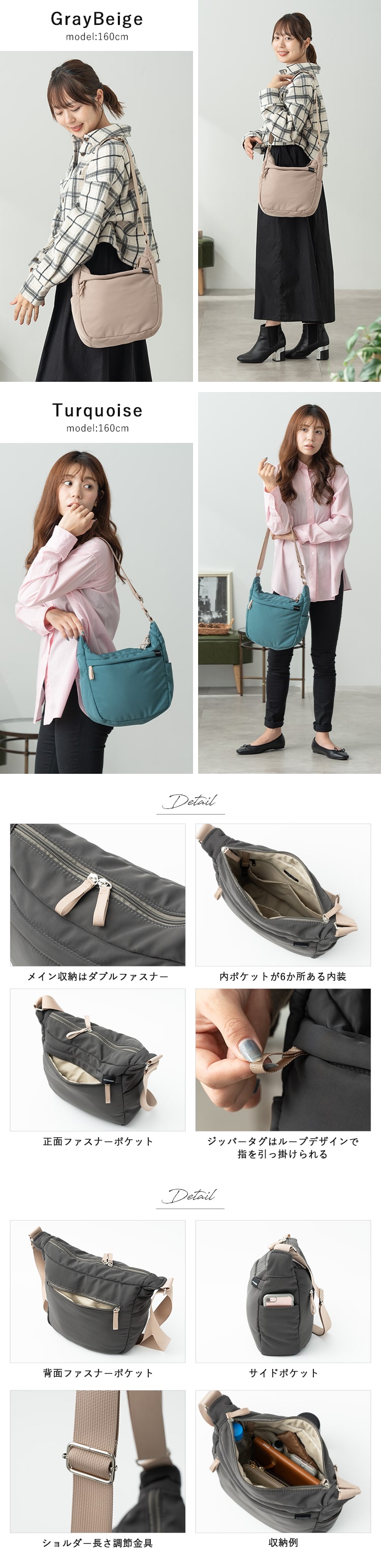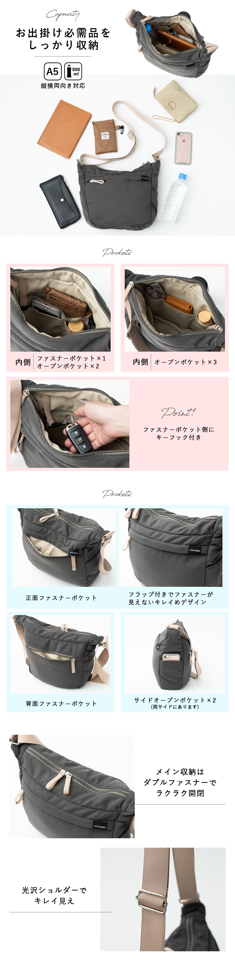 ショルダーバッグ レディース 斜め掛け 大人 おしゃれ 撥水 軽量 ナイロン a5 大きめ ペットボトル 通勤 通学 犬 散歩 20代 30代 40代 50代 Gray