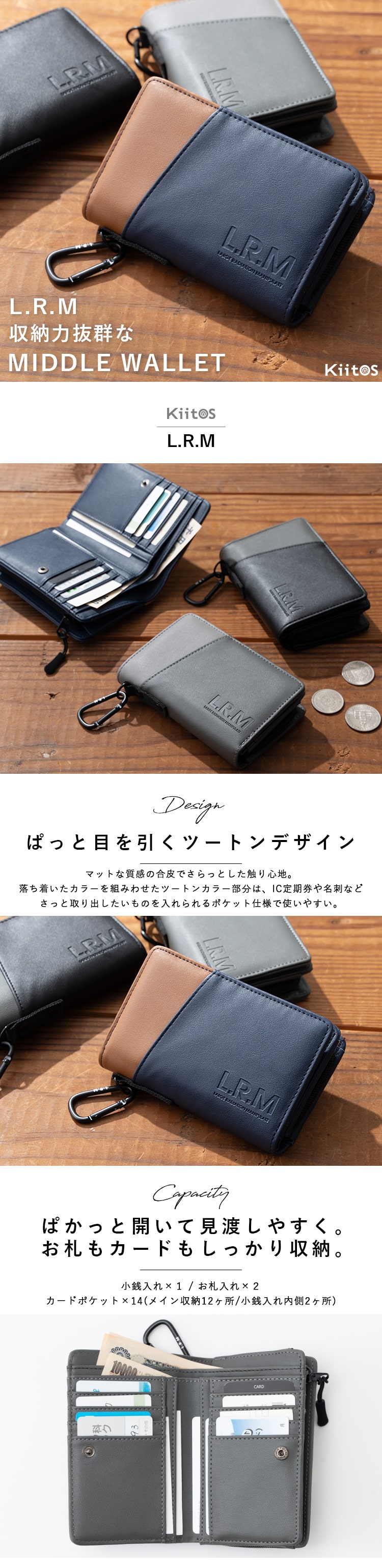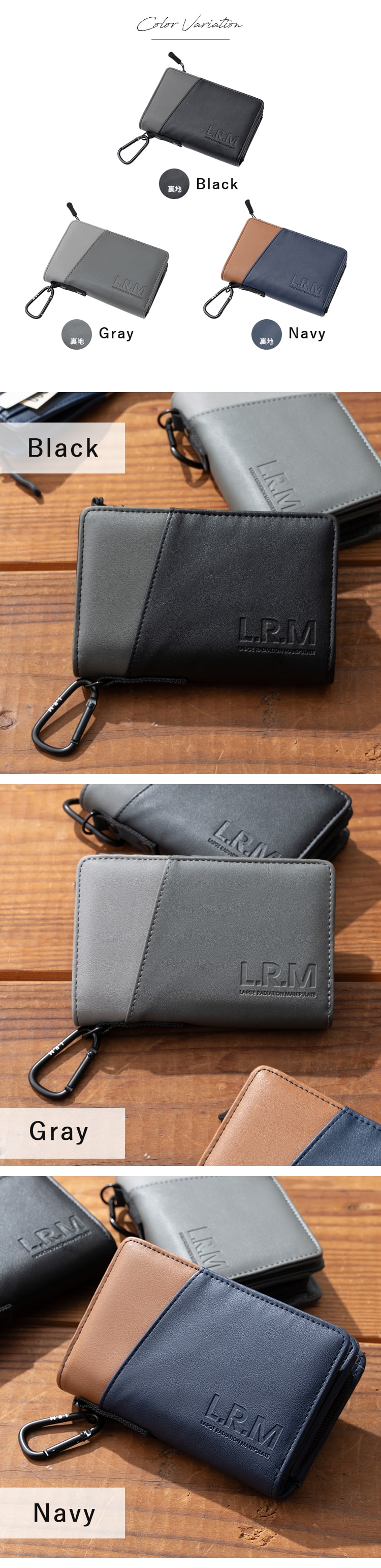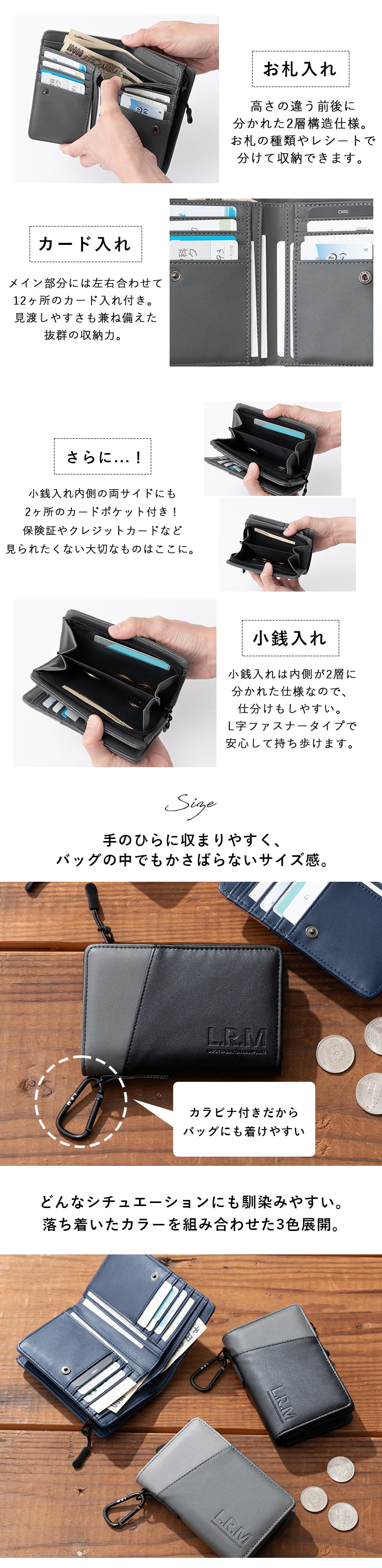 財布 メンズ 二つ折り l字ファスナー ブランド コンパクト おしゃれ L.R.M カラビナ 高校生 中学生 バイカラー 軽い ギフト Navy