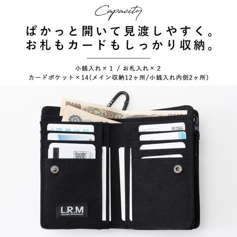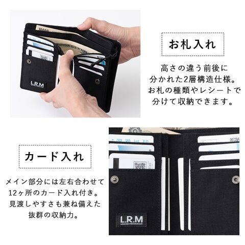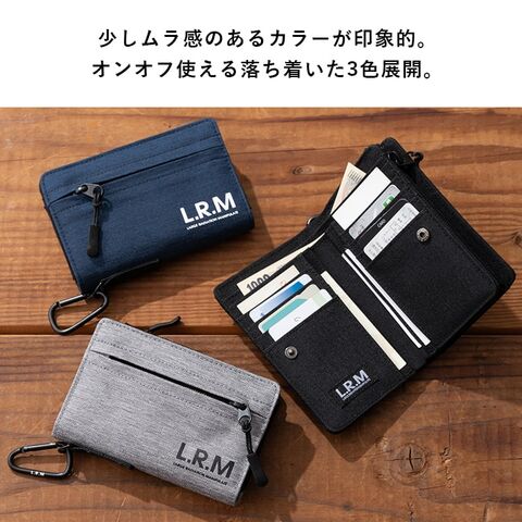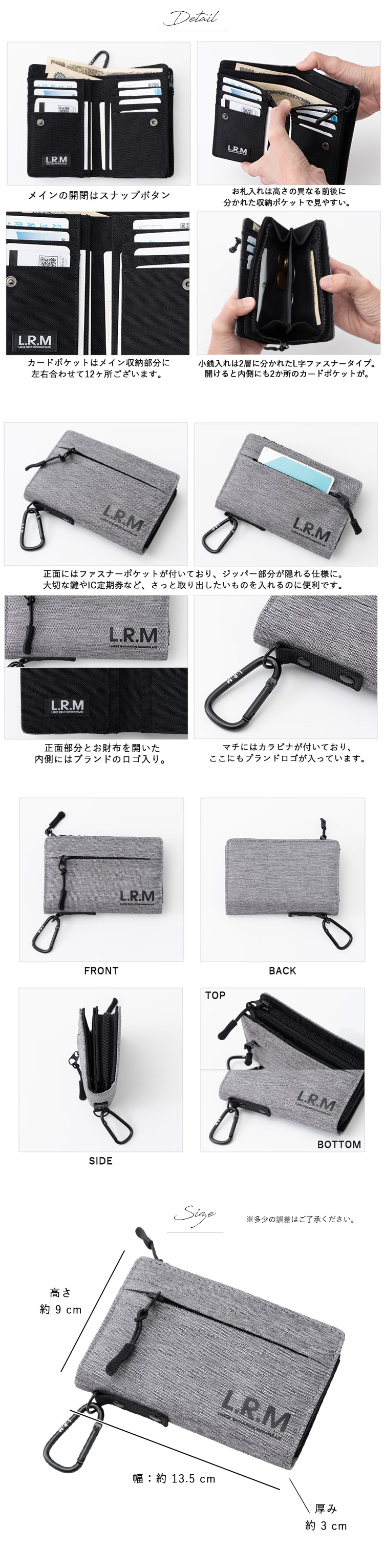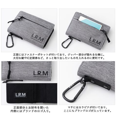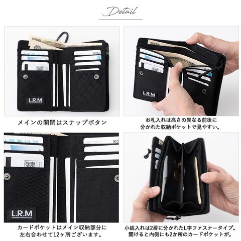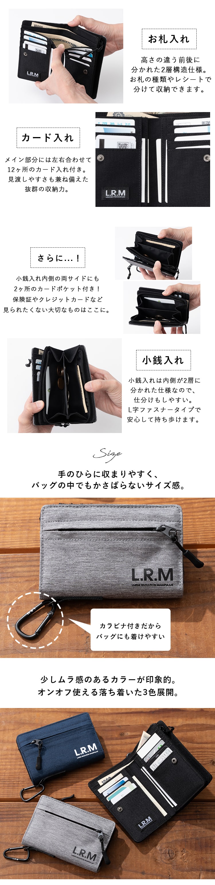 財布 メンズ 二つ折り l字ファスナー ブランド コンパクト おしゃれ L.R.M 小銭入れ カラビナ 高校生 中学生 ギフト Black