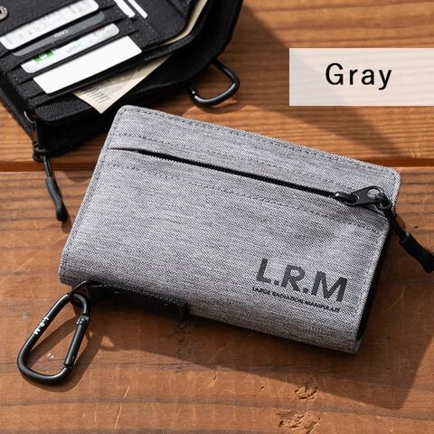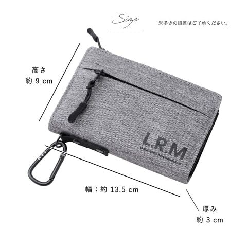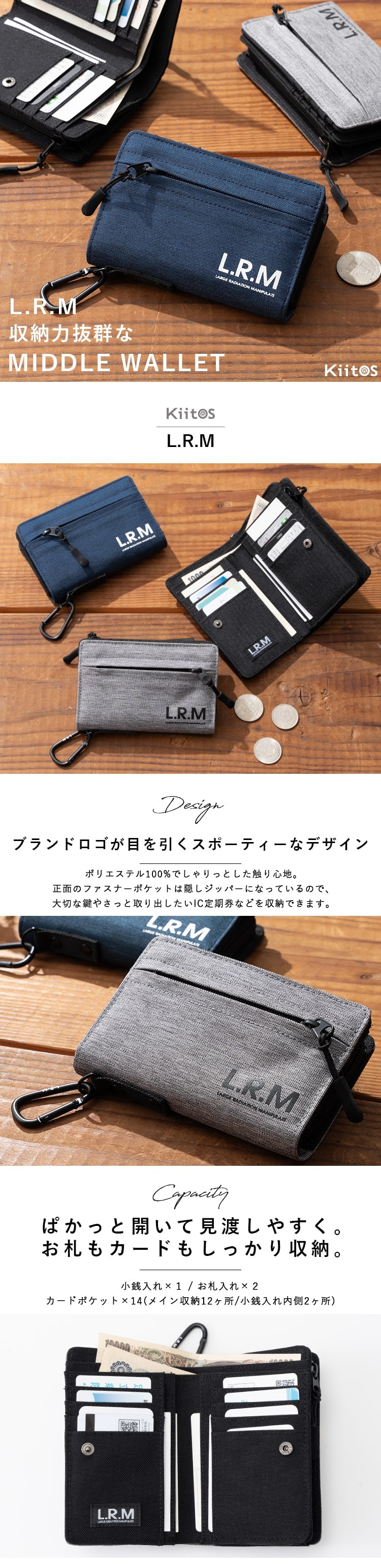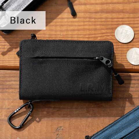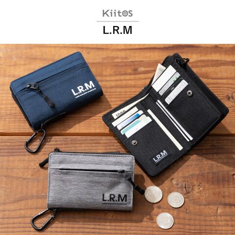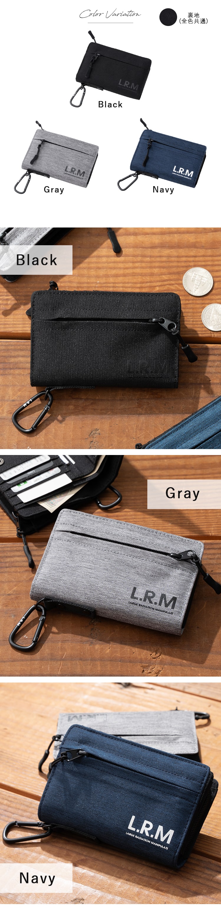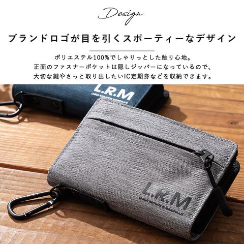 財布 メンズ 二つ折り l字ファスナー ブランド コンパクト おしゃれ L.R.M 小銭入れ カラビナ 高校生 中学生 ギフト Black