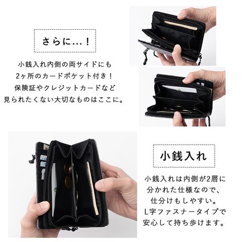 小銭入れにはL字ファスナーを使用し、内側はじゃばらがついた2層構造になっています。