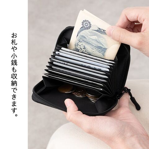 お札や小銭も入れられますので、「ちょっとそこまで」のお出かけに必要な分を持ち歩いたり、キャッシュレス派の方の小ぶり財布として使うのもおすすめです。