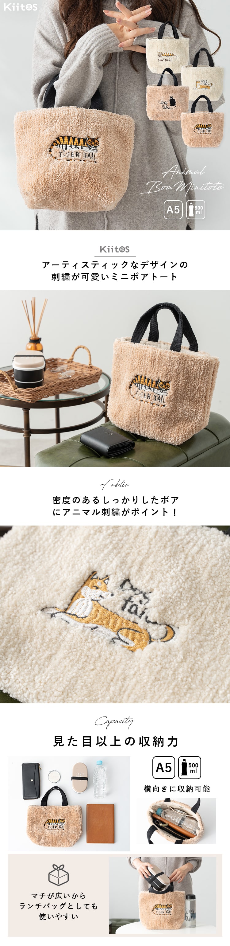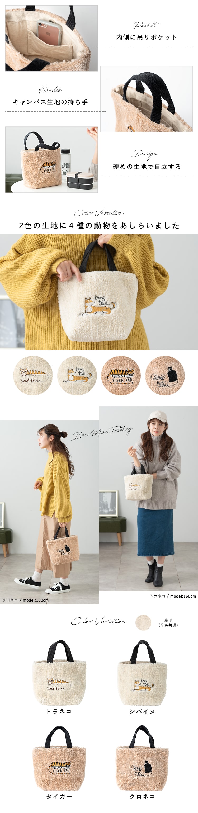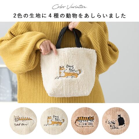トートバッグ レディース 小さめ ボア 刺繍 アニマル 軽量 犬 散歩 かわいい 自立 ランチバッグ マチあり a5 秋 冬 ギフト シバイヌ