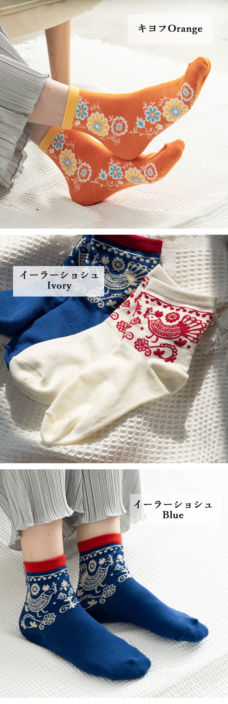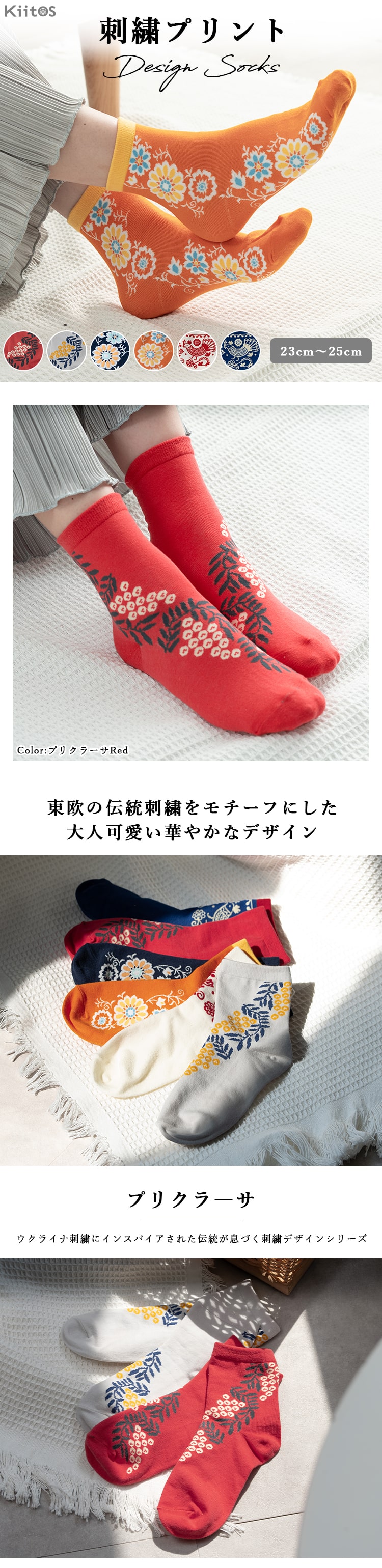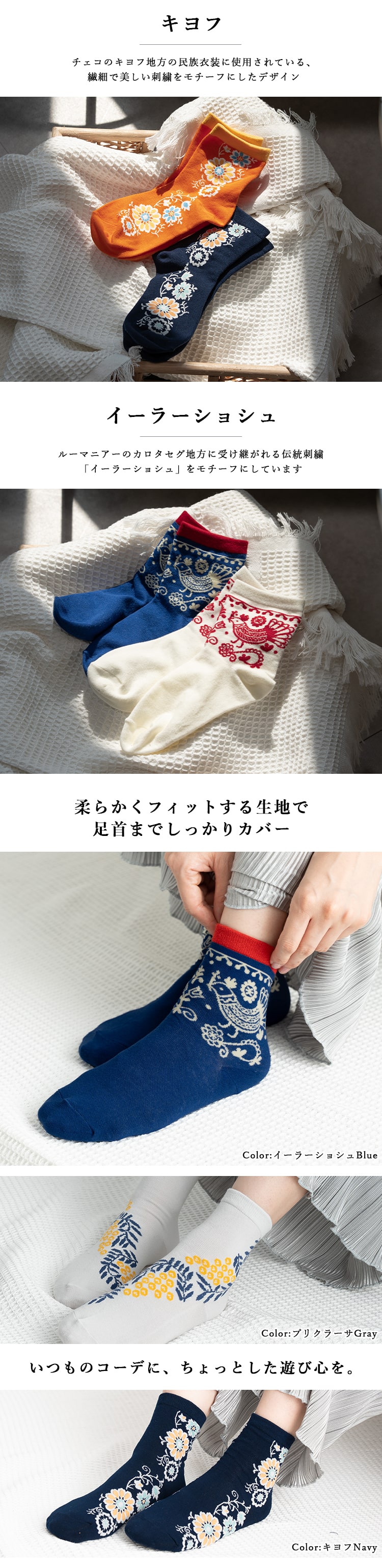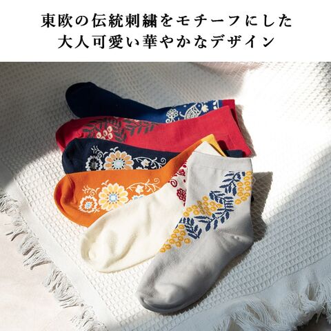 東欧の伝統刺繍をモチーフにした大人可愛いレディースソックス。
