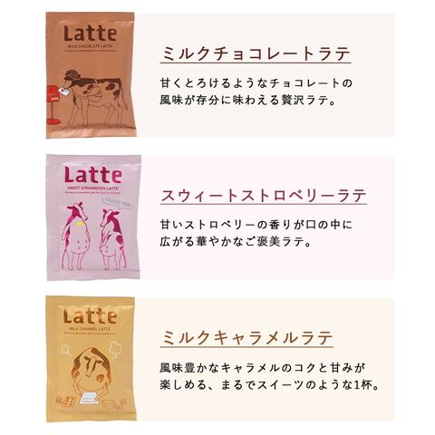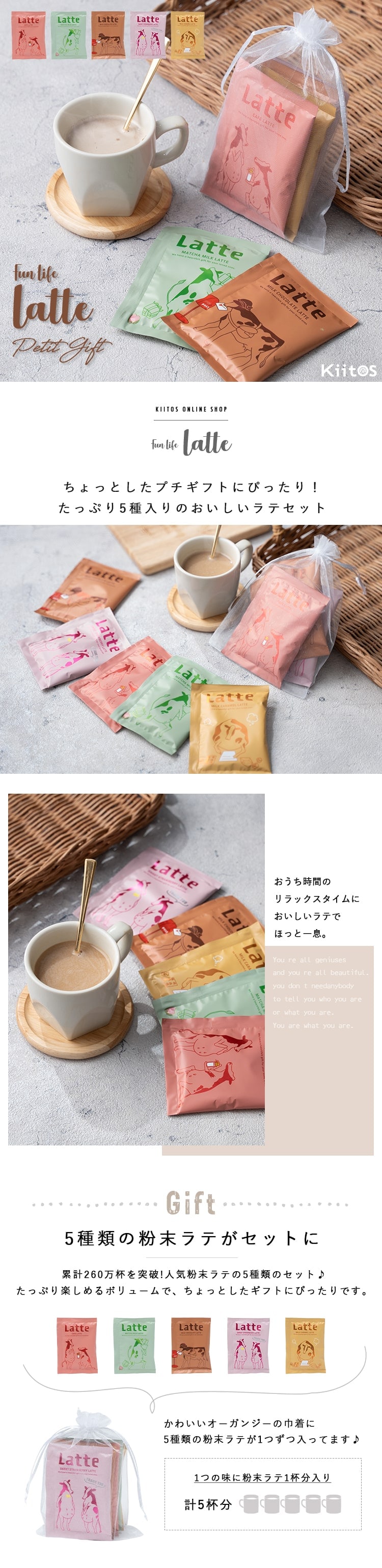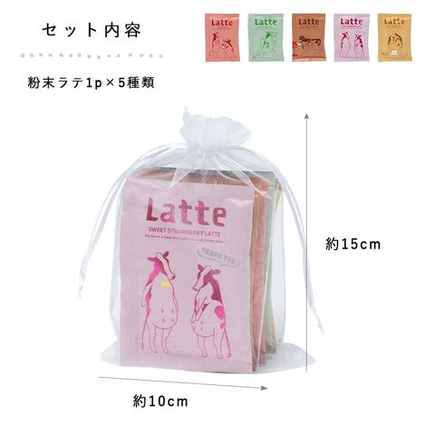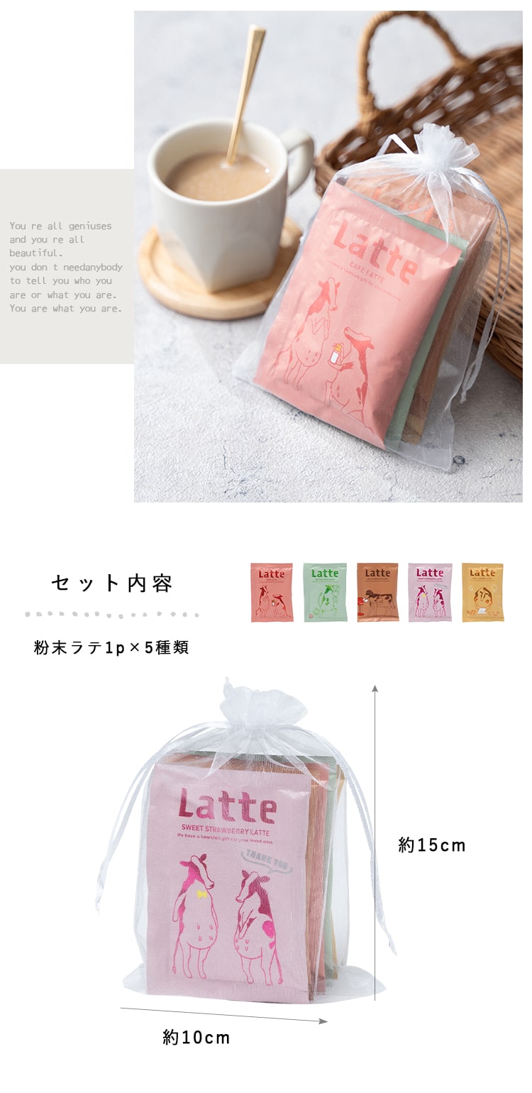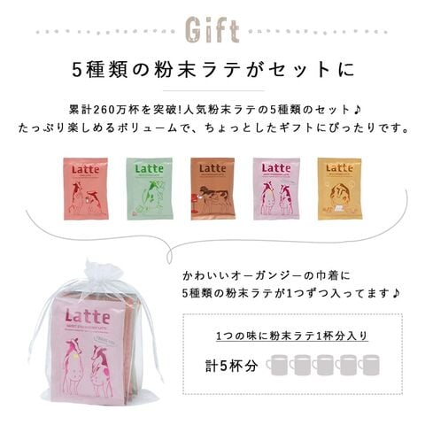 それぞれ違うフレーバーの粉末ラテを5種類のセットにしたプチギフトです♪