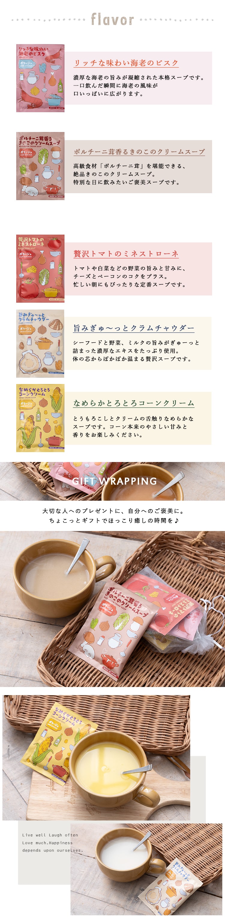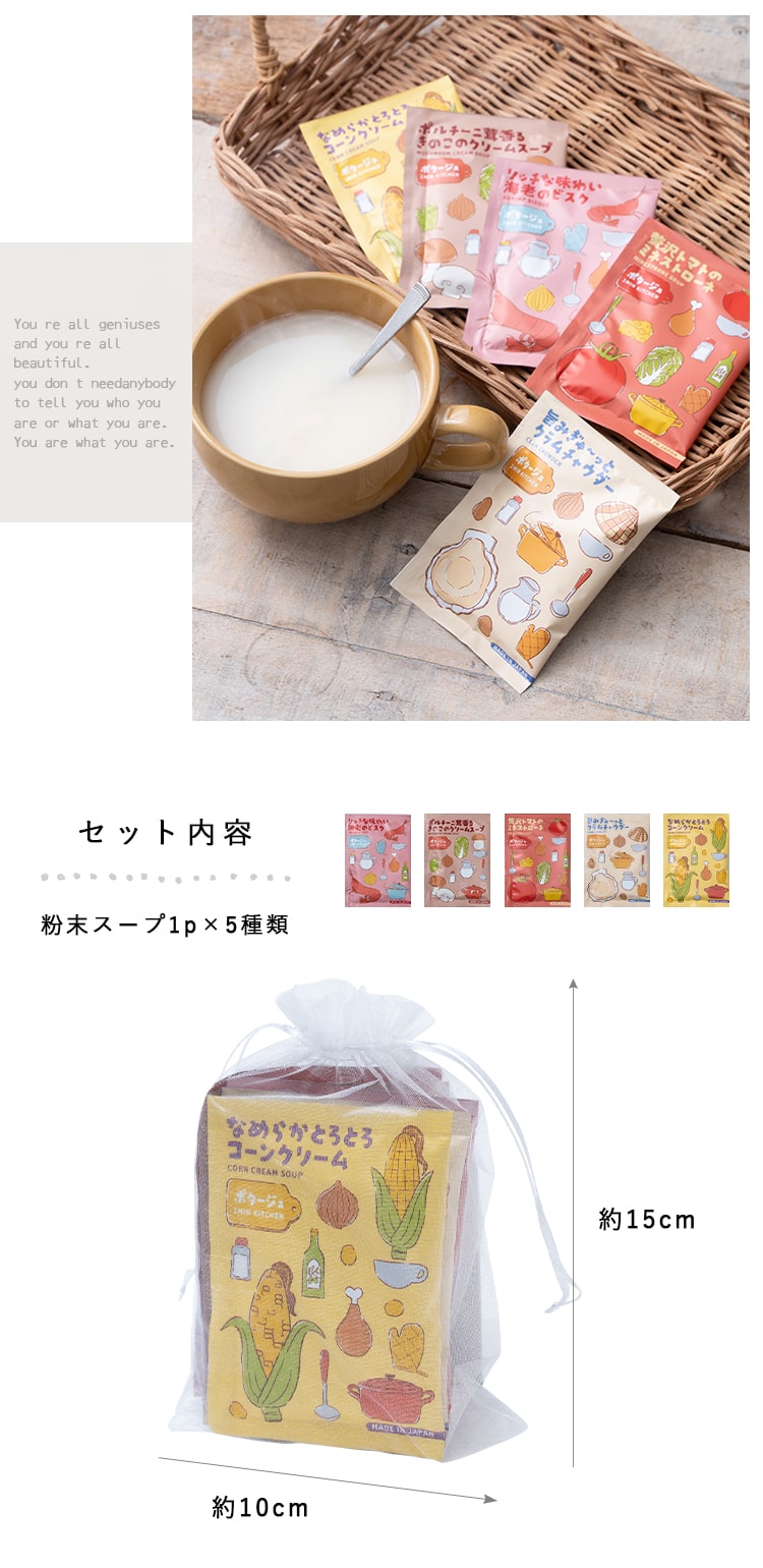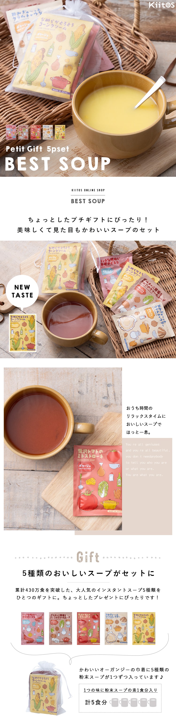 大人気のインスタントスープに、それぞれ違う味を5種類セットにしたプチギフトの登場です♪