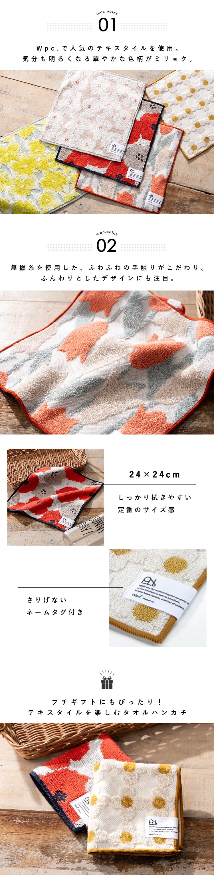 ハンカチ レディース ブランド w.p.c Patterns かわいい おしゃれ ギフト 無撚糸 綿100 25cmx25cm グラデーションフラワーイエロー