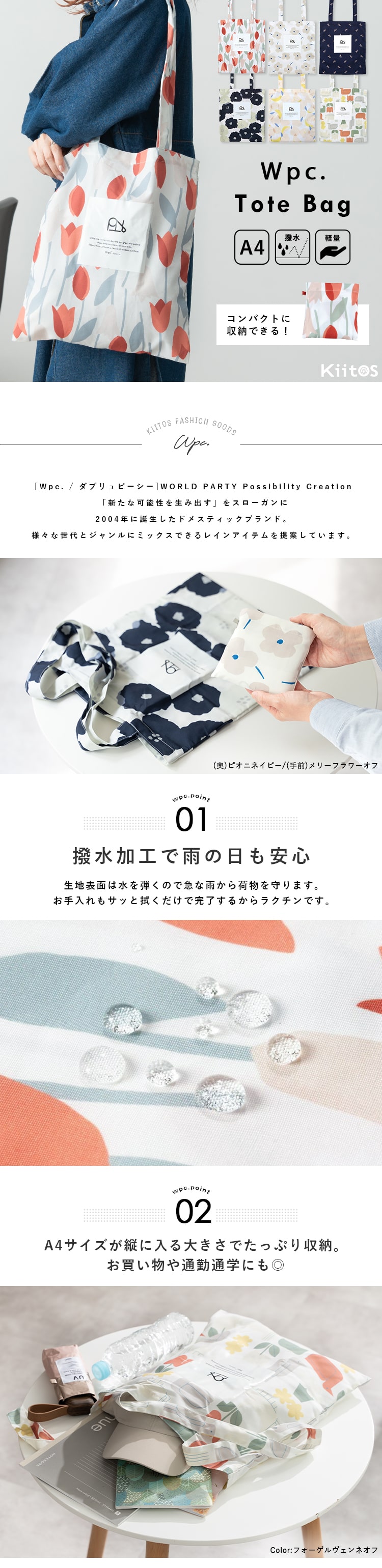 トートバッグ レディース ブランド Wpc. Patterns a4 大容量 撥水 軽量 コンパクト エコバッグ おしゃれ 花柄 肩掛け ギフト オメナイエロー
