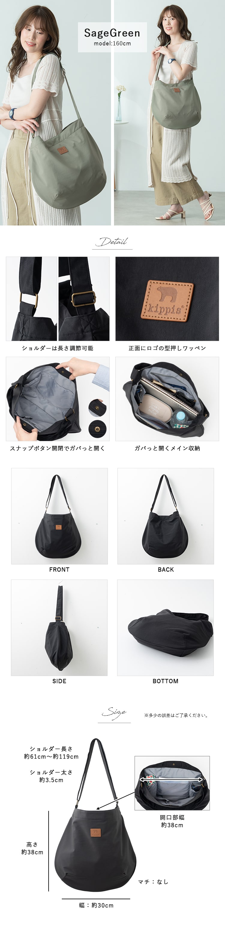 ショルダーバッグ レディース ブランド キッピス 大容量 a4 撥水 軽量 バルーン型 斜め掛け おしゃれ 通勤 通学 旅行 北欧 ギフト SageGreen