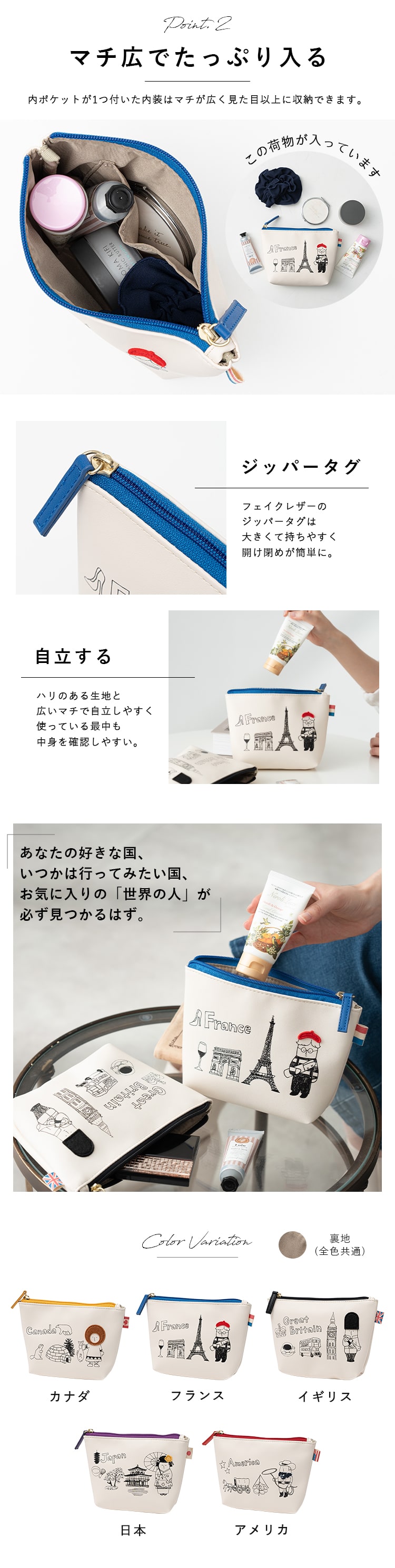 ポーチ 小物入れ かわいい おしゃれ ギフト 世界の人 レディース ブランド コスメポーチ 小さめ 自立 キャラクター 日本