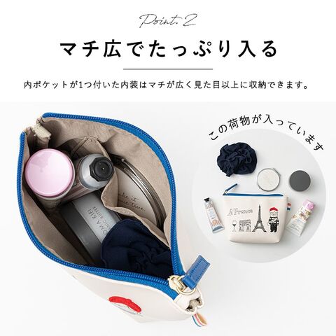 マチが広いので自立しやすく、使っている最中でも中身を確認しやすいのも嬉しい。