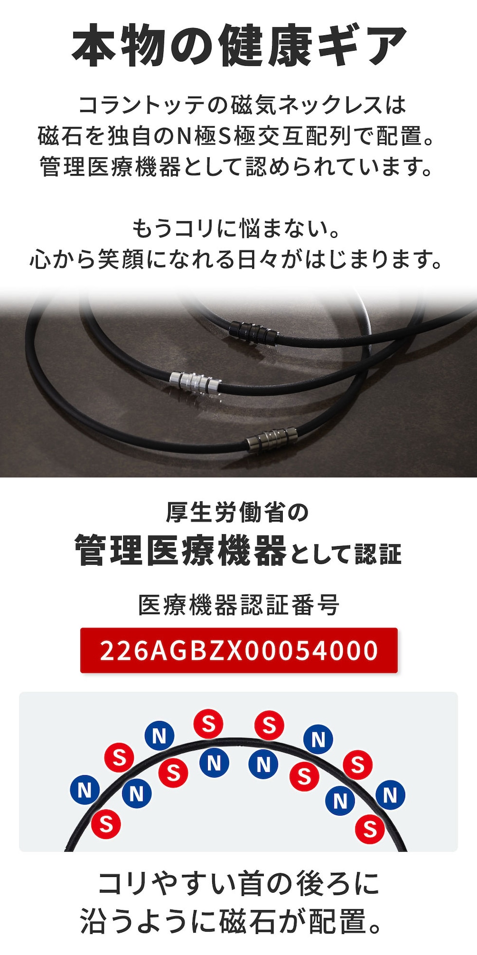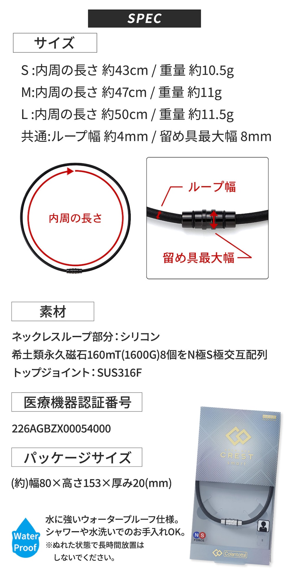 ネックループ部分:シリコン (希土類永久磁石160mT(1600G)8個をN極S極交互配列)