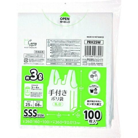 ジャパックス PRH25W 手付き ポリ袋 乳白 SSS 100枚入
