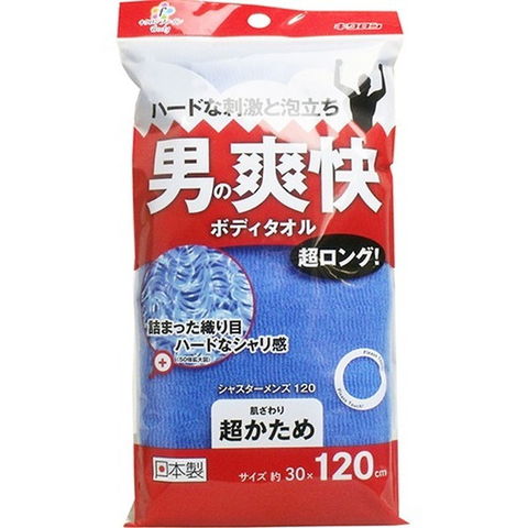 ハードな刺激と泡立ちで爽快な洗いごこちのナイロン100%高密度ボディタオル。ボリュームのある厚い生地が豊かな泡を生み出し、独特のウェーブ糸が詰まった織り目がハードなシャリ感です。ナイロン100%なのですすぎも簡単、水切れも良く衛生的です。からだの大きな方や背中洗いに便利な120cmロングサイズです。