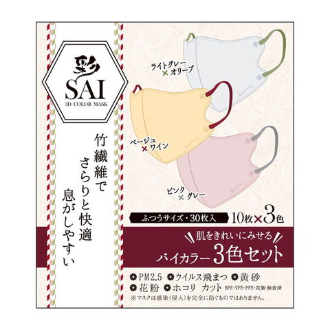 商品名:日翔 彩 SAI 立体マスク バイカラー ふつうサイズ 3色×10枚 30枚入
