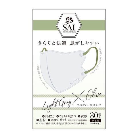 商品名:日翔 彩 SAI 立体マスク ライトグレー×オリーブ ふつうサイズ 30枚入 個包装