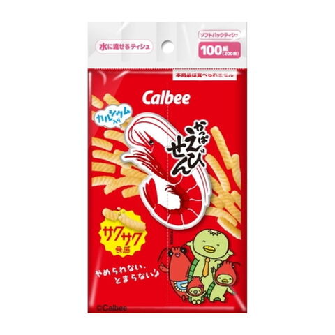 商品名:ダイレイ 水に流せるティシュ カルビー かっぱえびせん ソフトパックティシュ 100組