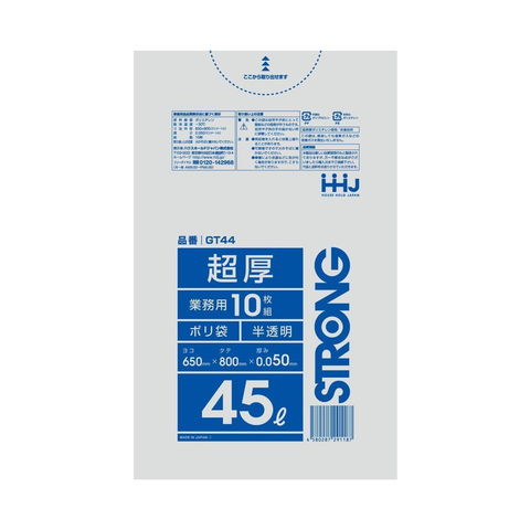 商品名:ハウスホールドジャパン GT44 超厚 ポリ袋 45L 半透明 10枚