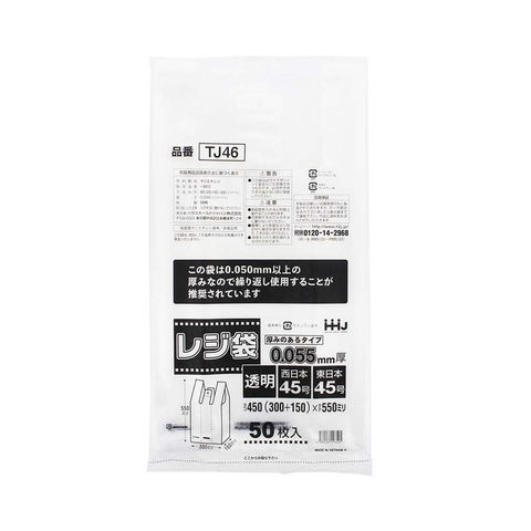 商品名:ハウスホールドジャパン TJ46 レジ袋 45号 0.05mm以上 透明 50枚入