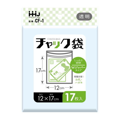 ハウスホールドジャパン CF-1 吊下 チャック袋 透明 17枚 120×170×0.04
