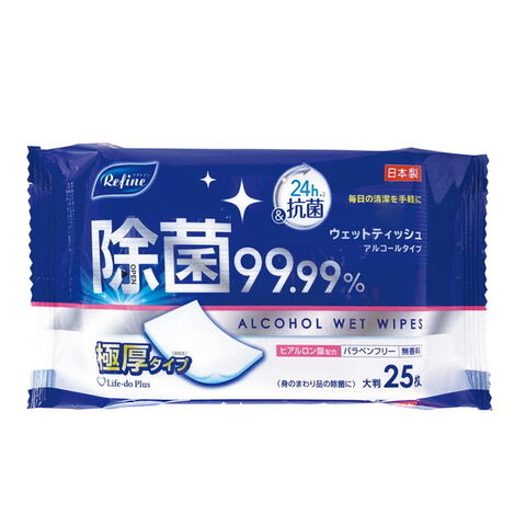 商品名:Life-do.Plus 極厚 アルコール除菌 大判 ウェットティッシュ 25枚入り