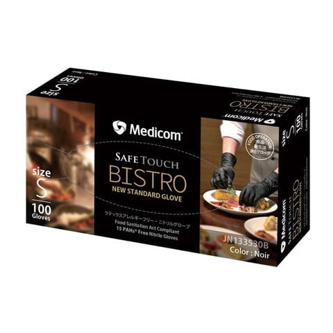 商品名:メディコムジャパン セーフタッチ ビストロ ノアール 黒 Sサイズ 100枚 使い捨て手袋