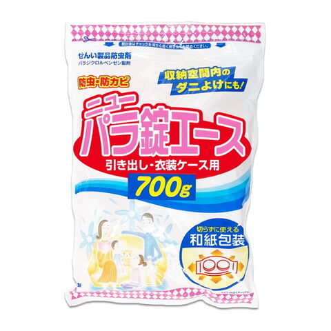 ライオンケミカル ニューパラ錠エース 引き出し 衣装ケース用 防虫剤 切らずに使える和紙包装 便利なファスナー付 700g 繊維製品防虫剤 防カビ