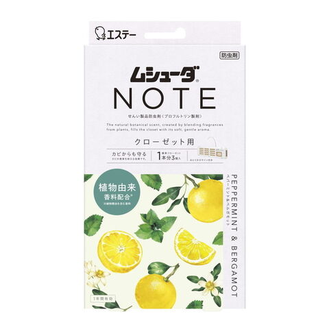商品名:エステー ムシューダ NOTE 1年間有効 クローゼット用 3個入 ペパーミント&ベルガモット