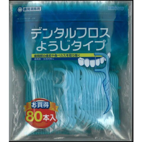 エビス デンタルフロス ようじタイプ 80本入 先端ピック付き 歯の裏側に届きやすいアーチ形状 【4901221025802】