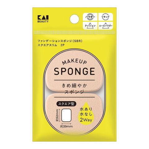 【×5個 配送おまかせ】貝印 KQ3293 ファンデーションスポンジ (SBR) スクエアスリム 2個入