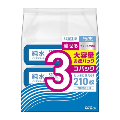 商品名:日本製紙クレシア スコッティ 流せる ウェットタオル 純水 ノンアルコール 70枚×3コパック