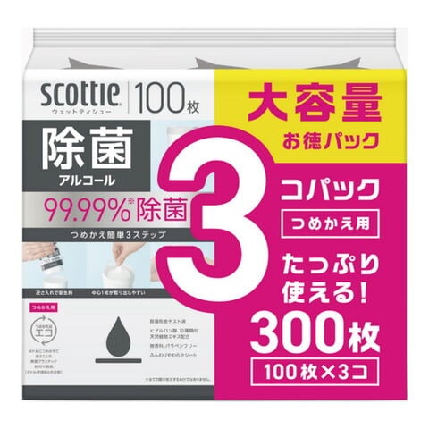 商品名:日本製紙クレシア スコッティ ウェットティシュー 除菌 アルコール つめかえ用 3コパック