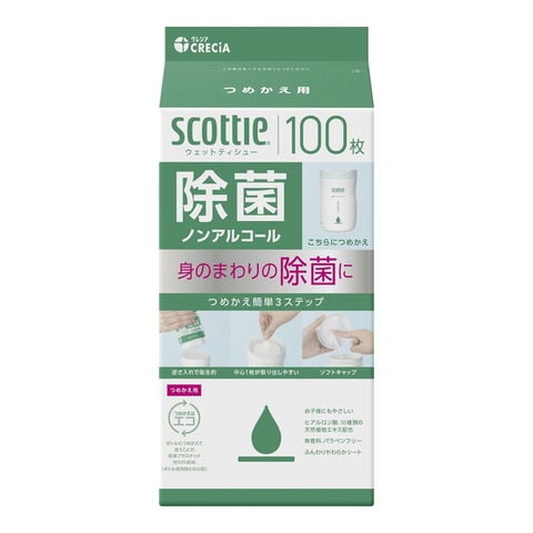 商品名:日本製紙クレシア スコッティ ウェットティシュー 除菌 ノンアルコール つめかえ用 100枚入