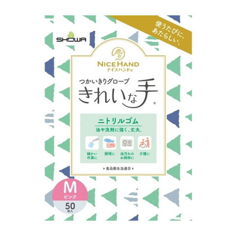 ショーワグローブ ナイスハンド きれいな手 つかいきりグローブ ニトリルゴム 50枚入 M ピンク