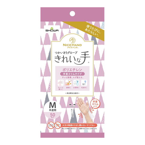 ショーワグローブ ナイスハンド きれいな手 つかいきりグローブ ポリエチレン 手首スリムタイプ 50枚入 M 使いきり手袋