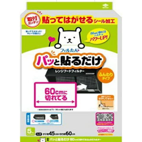 商品名:パッと貼るだけ 60cmに切れてる ふんわり フィルター 5枚入