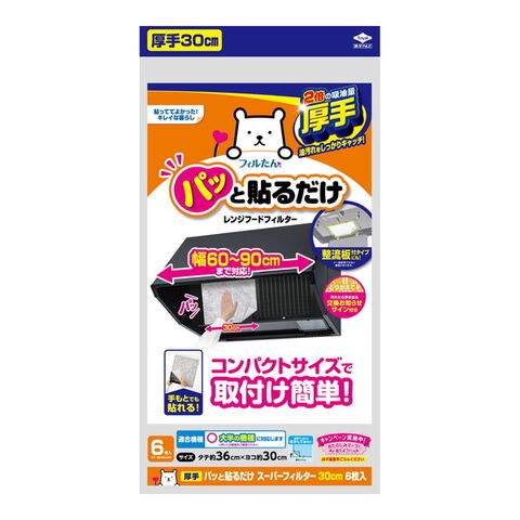 商品名:東洋アルミ フィルたん パッと貼るだけ レンジフードフィルター コンパクトサイズ 6枚入り