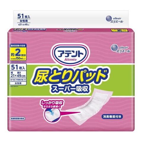 商品名:大王製紙 エリエール アテント 尿とりパッド スーパー吸収 女性用 51枚入 消臭機能付き▼医療費控除対象商品