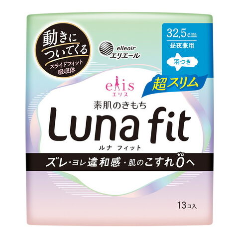 大王製紙 エリエール エリス 素肌のきもち ルナフィット 超スリム 昼夜兼用 32.5cm 羽つき 13コ入 生理用ナプキン