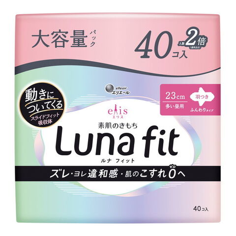 大王製紙 エリエール エリス 素肌のきもち ルナフィット 多い昼用 羽つき ふんわりタイプ 40コ入 生理用ナプキン