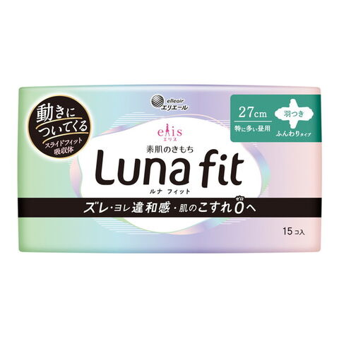 大王製紙 エリエール エリス 素肌のきもち ルナフィット 特に多い昼用 羽つき ふんわりタイプ 15コ入 生理用ナプキン